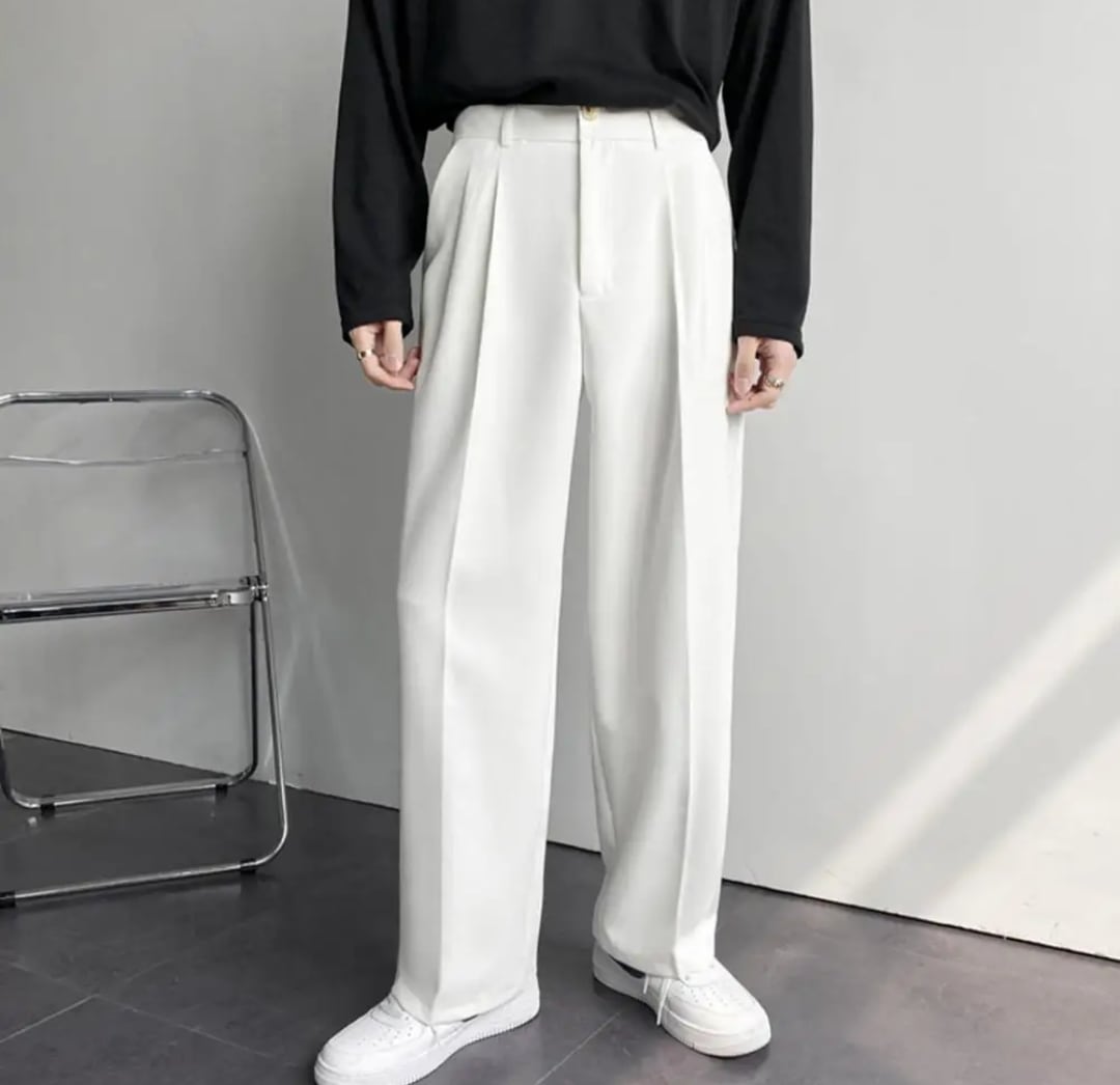 韓国のメンズワイドレッグパンツが登場!ストリートスタイルに欠かせない、ルーズなシルエットが特徴です。トレンド感満載のこの一着は、自分らしい着こなしを楽しむ男性にピッタリ。スニーカーとの相性も抜群で、カジュアルなスタイリングをさらりと決められます✨